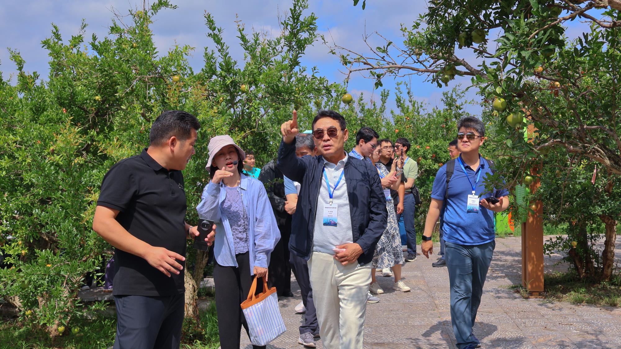 作为淮北的一张生态名片,明清石榴园以其悠久的种植历史和独特的石榴文化吸引了代表团的目光。园内古树苍劲,果实累累,市长一行在主理人邵景卫的带领下,详细了解淮北石榴的品种特点、栽培技术及产业价值